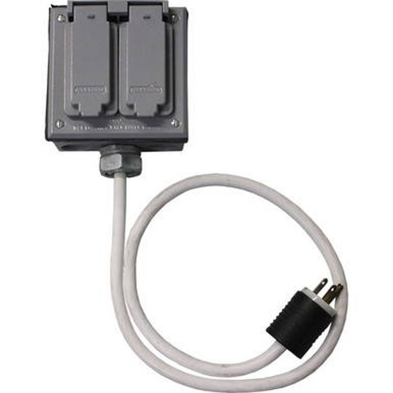 The CELINA Quad Box is used to safely split power lines. Each Quad Box has a total of four 3-pronged outlets, and boasts a maximum 2200 watt capacity. With a 3' (.9 m) 12/3 white cord, the Quad Box has a faceless GFCI which meets construction codes for a watertight seal when the outlet cover is closed.