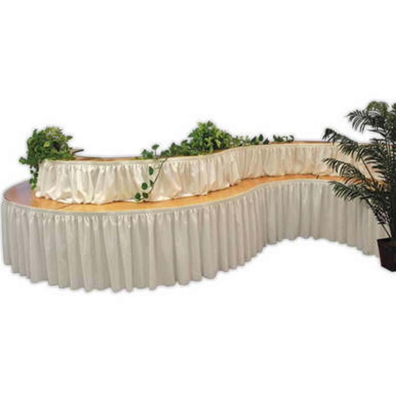 The Serpentine Bar Top Inner Edge Table is designed to compliment the 3' x 8' Serpentine Banquet Table by adding a second level on the table top. As the name suggests, the dimensions allow the table to match up with the table's inner edge. Created from the same lacquered wood, each bar top table is a completely flat surface with no exposed bolts or fasteners. The price listed is for a single tables; shipping requires tables to be sold in set of 6.