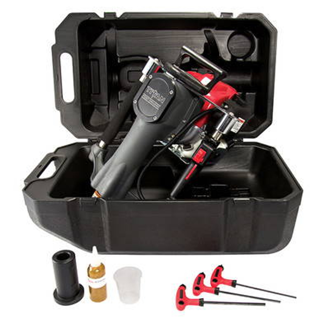 Powerful and portable commercial duty post driver. Powered by Honda GX35, 1.3hp engine. The 2” heavy duty steel barrel drives posts up to 1 7/8” diameter. Includes a 1” adapter sleeve for driving posts, rods, or rebar up to 7/8”. This post driver is 100% self-contained, easy to lift, move, and carry down the fence line. No hoses or compressors. Drives posts in half the time of a manual driver. Assembled and serviced in the USA. Comes complete with rugged poly carry case and tool kit for servicing.