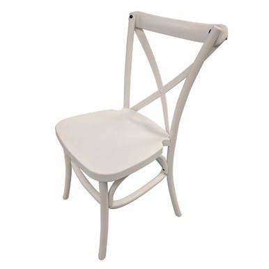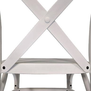 With graceful curves, decorative design, and a soft white finish, the White Resin Cross Back Chair is a must for your next wedding or banquet. In addition to style, the non-marking foot caps, through-colored resin and internal steel leg support tubes make this one of the most durable chairs available.